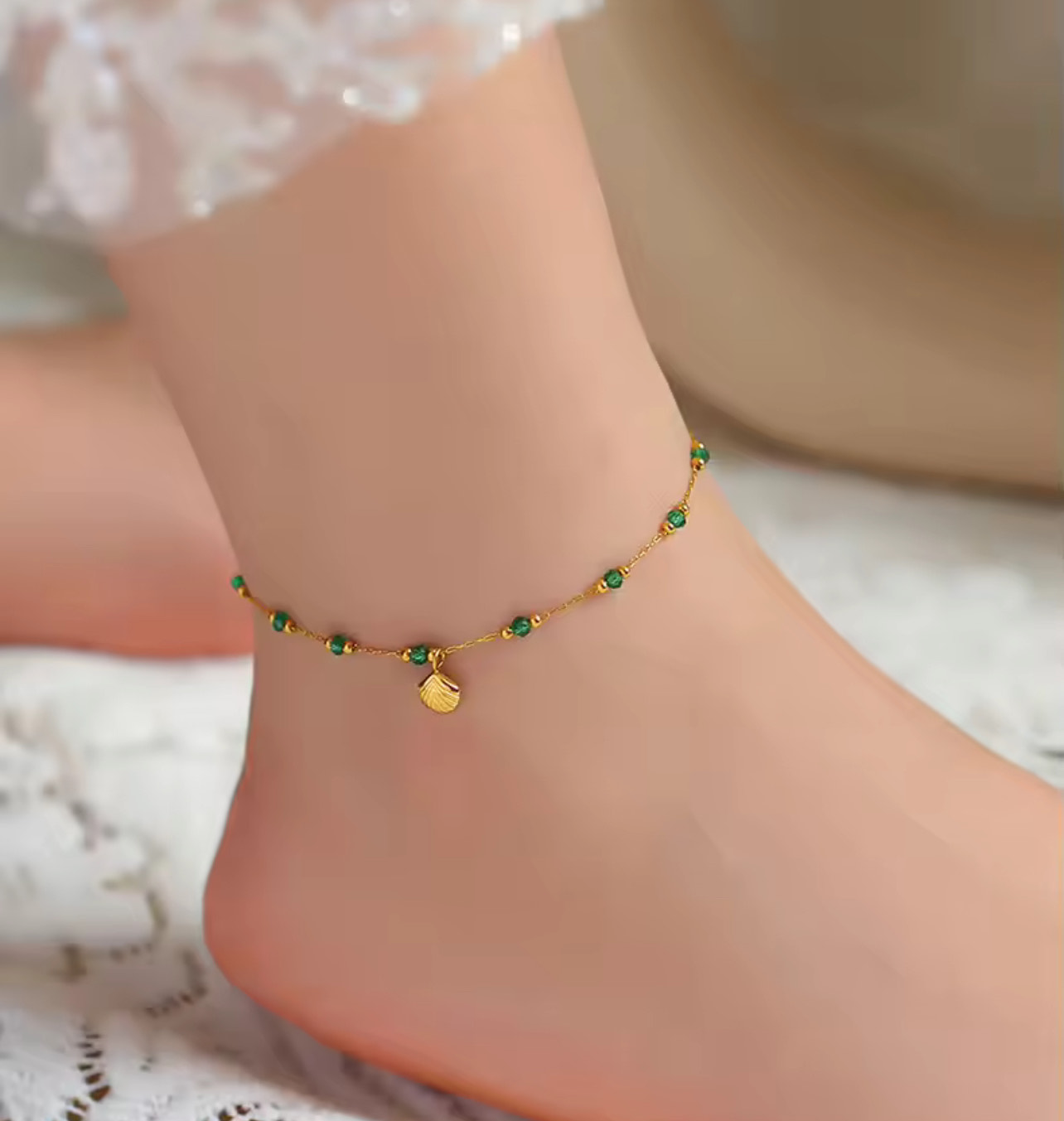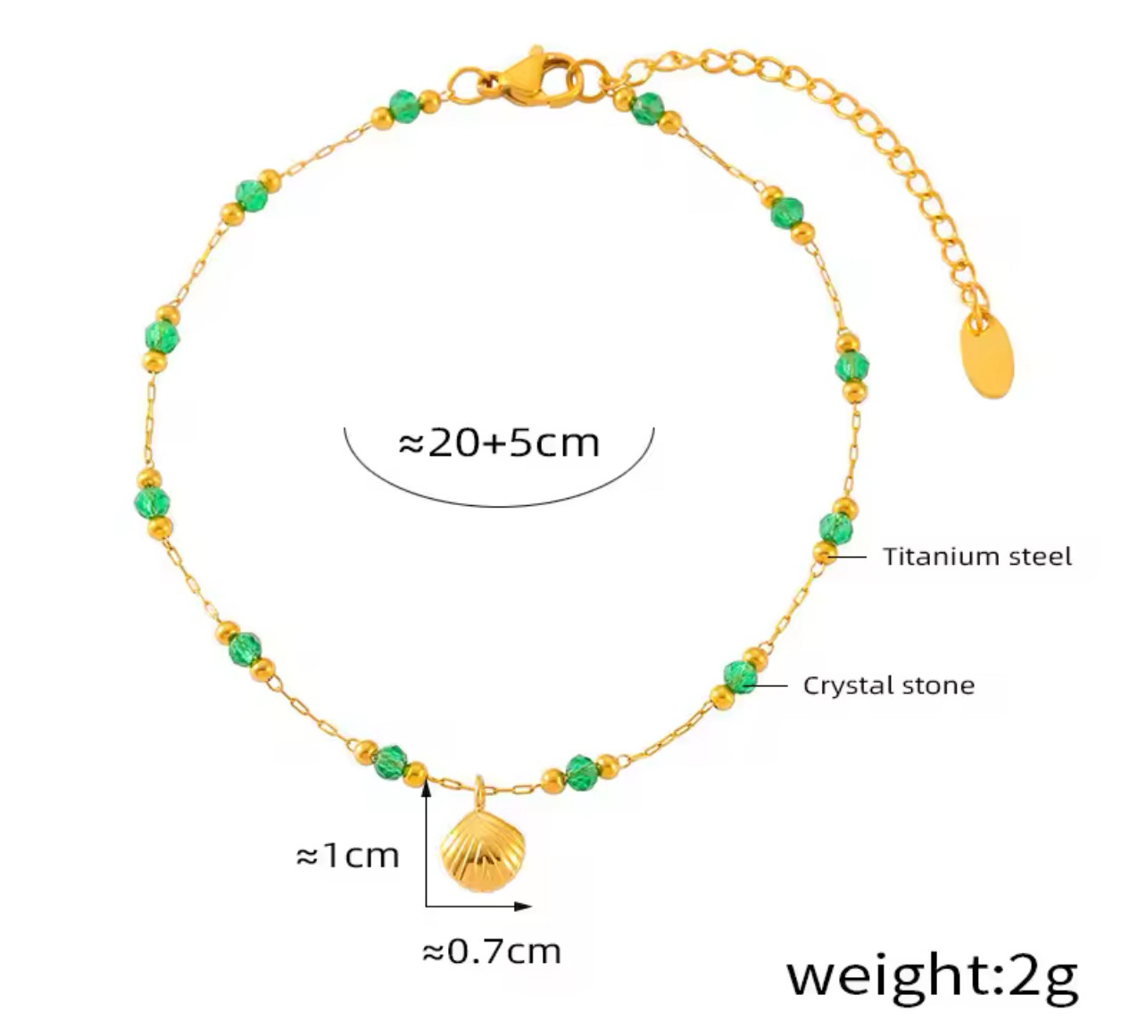 18K GREEN CRYSTAL ANKLET PLUS BRACELET