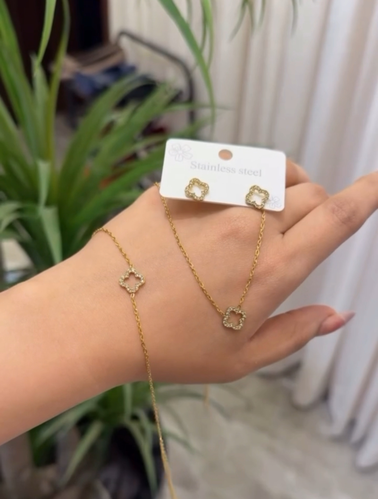 18k Zircon leaf 3 pc set